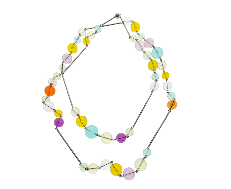 透明感のあるパステルカラーのビーズが、軽やかに揺れて、顔回りを明るく華やかに彩る春にぴったりな一品。
