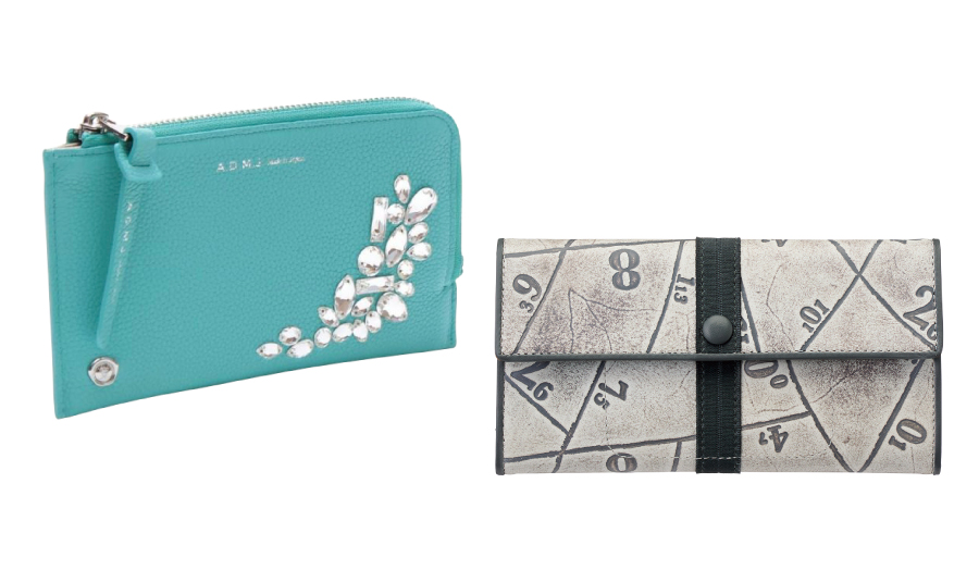 特徴的な数字モチーフが大人の遊び心を感じさせるシリーズ。スナップボタンを外すと、お札・カード・小銭がすべて取り出せるスマートさも人気の秘密。